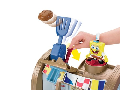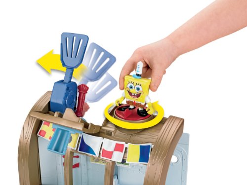 Die Welten von Imaginext und Bikinihose sind kombiniert, sodass Kinder mit ganz Drehung einer Figur ihre Sponge Bob Spannung hervorrufen können. Kinder werden es lieben, den berüchtigten Kampf zwischen Sponge Bob und Plankton auszuführen und den zu keiner Zeit endenden Kampf um das Rezept anstelle die Crabby Patties zu schützen/zu stehlen. Zwei Aktivierungsscheiben lassen jede im Set enthaltene Figur ihr Restaurant verteidigen. Plankton (und sein Exo-Anzug) kann die Aktivierungsscheibe auf dem Chum Bucket drehen, um einen versteckten Chum Launcher (4 Scheiben im Lieferumfang enthalten) zu enthüllen. Trotzdem haben Sie keine Angst, Sponge Bob wird in der Lage sein, sich mit einer Drehung einer Scheibe zu schützen, und einen riesigen Spatel freizugeben, der Crabby Patties (4 im Lieferumfang enthalten) bei Plankton und dem Chum Bucket startet. Im Überfluss Platz in jedem Restaurant, mithin Kinder im Restaurant spielen können. Die Krusty Crab hat einen Grill und einen Crabby Patty Vault anstelle Sponge Bob. Der Chum Eimer hat einen geheimen Spionagebereich oben auf dem Haltegriff und zwei Spielebenen, ein Restaurant auf der unteren Etage und Planktons geheimes Labor auf der zweiten Etage zum Entdecken und Erstellen des geheimen Rezeptes Plankton und Exo Anzug und Sponge Bob Figuren sind im Set enthalten.