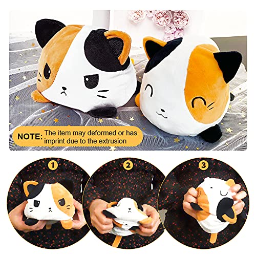 😺 [Reversible Double-Sided Flip Design]: Die süße plüsch spielzeug hat ein einzigartiges doppelseitiges Design, das super weich und leicht umzudrehen ist. Verschiedene Ausdrücke können leicht Ihre Ambiance ausdrücken.