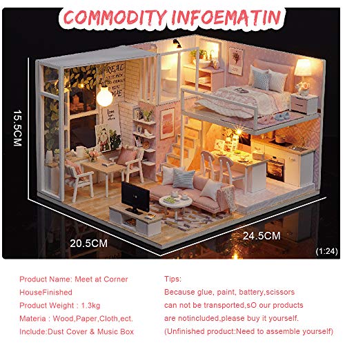 ○ 【DIY-Projekt】 Das DIY-Puppenhaus enthält alle auf dem Fotografie gezeigten Möbel. Dieses Produkt ist noch nicht fertig, Sie sollten es zusammenbauen. Es ist für Personen über 14 Jahre brauchbar.