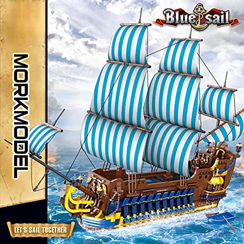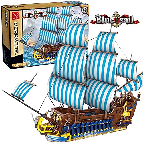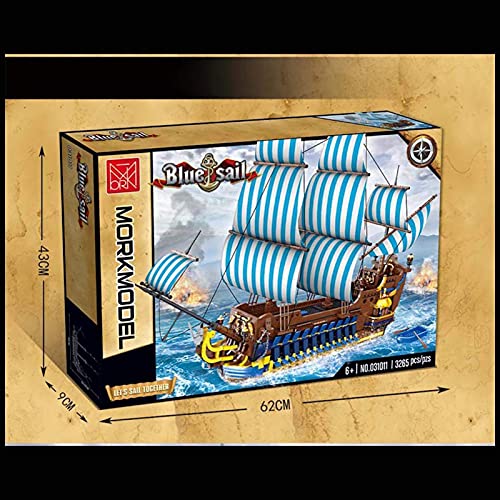 ⛵ Montage: Insgesamt 3265 Ausschnitt. Es gibt Masten, Segel und Artillerie auf Sperrholz und andere Details. Klassischer Baustil, blaue Segel, restaurieren das echte hölzerne Frachtschiff. Kompatibel mit Lego Piratenschiff. Der hohe Simulationsgrad macht die Form extrem schockierend. bringt Ihnen atemberaubenden visuellen Genuss.