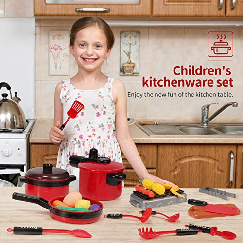 GeyiieTOYS Kinderküche Zubehör Topfset Kochtopf Kochgeschirr Set Spielküche aus Pfanne und Lebensmittel Küchenspielzeug…