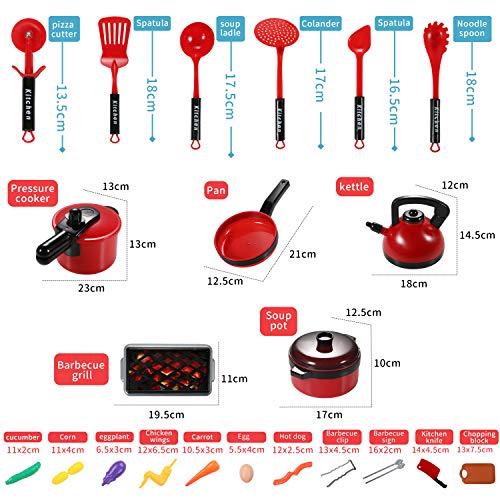 【24 KINDERKÜCHE TOPFSET】Küche Spielset inklusive Schnellkochtopf, Pfanne, Wasserkocher, Grill, Suppentopf, 11 Utensilien, komplettes Set inklusive 8 Lebensmitteln. Kinder können so tun, qua würden sie am Herd stehen oder grillen. Abundant Spaß mit diesem Küchenspielzeug!