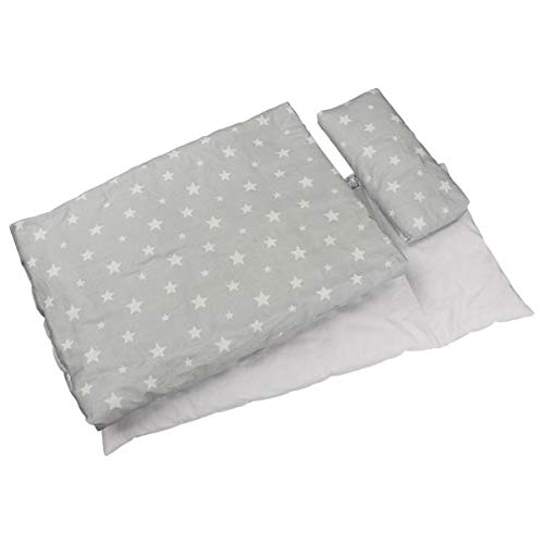 goki 51517 Puppenbettzeug Sternenhimmel Kopfkissen= 22 x 10 cm, Oberbett= 41 x 31 cm,, grau/weiß