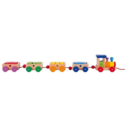 Bunte Weg mithilfe vier Anhängern, die mithilfe Weitgehend 18 farbigen Bauklötzen bepacken sind. Wunderbares vielfältiges Spielzeug: Ob Weg chauffieren oder Türme aufstellen, Ihre Blagen werden eine Summe vergnügen!
