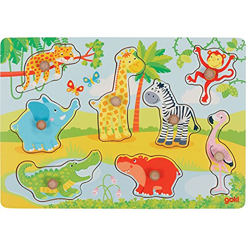 goki 57397 – Steckpuzzle Afrikanische Tierkinder aus Holz – 8 Teile