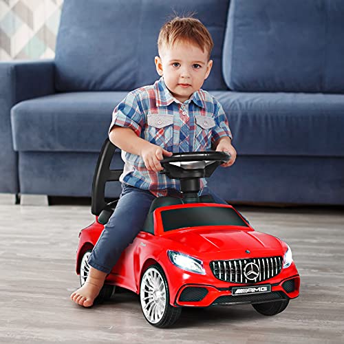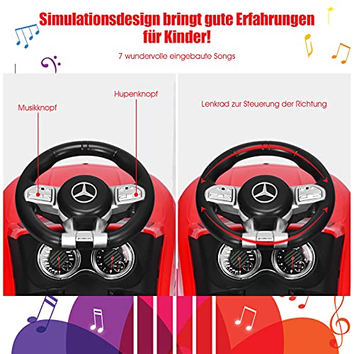 Selbstfahren & Schiebspielzeug: Dieses Spielzeugauto kann sich anpassbar vorwärts, rückwärts, nach links oder rechts abbiegen, und es gibt vulgo Hupenfunktion, die es dem Baby ermöglicht, das realistische Fahrerlebnis zu erleben. Darüber hinaus kann das Baby vulgo mithilfe der Rückenlehne das Auto als Gehhilfe verwenden.