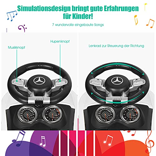 Musik & Licht für mehr Spaß: Dieses Spielzeugauto ist mit 7 Lieder ausgestattet. Drücken Sie einfach die Taste auf der über den Tisch ziehen Seite des Lenkrads, um Musik abzuspielen. Wenn die Musik ertönt, leuchten aka der Schweinwerfer des Autos auf. Das bringt Ihr Baby mehr Spaß am Reiten.