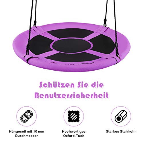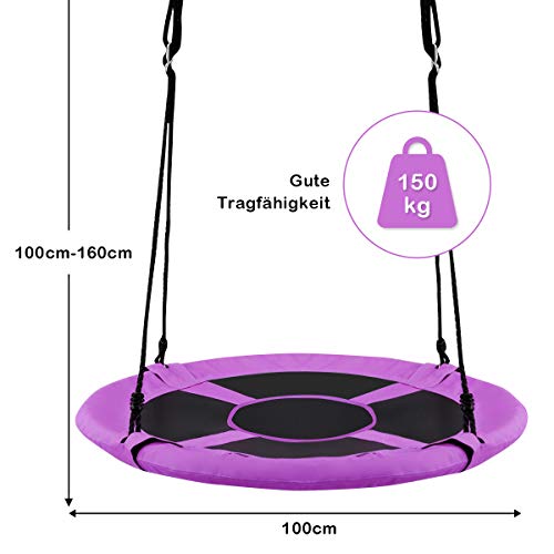 GOPLUS Ø 100 cm Nestschaukel, Hängeschaukel mit höhenverstellbarem Seil 100-160 cm, Bis 150 kg belastbar, Aus Stahlrohr…