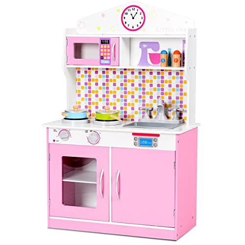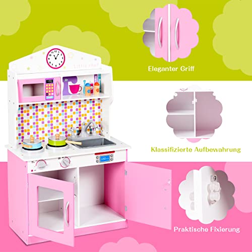 Perfektes Küchenspielzeug – Unser Küchenspielzeug ist wie eine echte Küche. Kinder können ihre praktischen Fähigkeiten während des Unterhaltungsprozesses modifizieren. Dieses Küchenspielzeug für Kinder wird mit zwei Kochfeldern, einer Spülbecken, einer Mikrowelle, zwei Töpfen und zwei Gewürzflaschen geliefert. Gegenstände, die Sie in der echten Küche brauen, alles in diesem Spielset. Darüber hinaus besteht diese Spielzeugküche aus hochwertigen MDF-Platten, die robust und zäh in der Konstruktion sind und eine lange Nutzungsdauer haben. Unser Küchenspielzeug, Ihre ideale Synchronisierung!