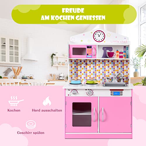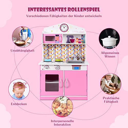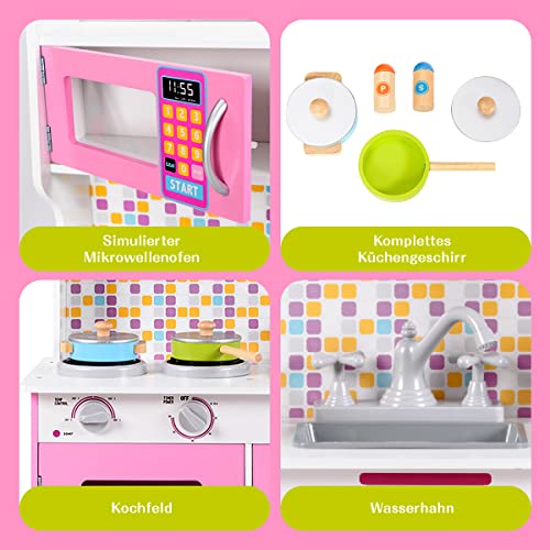🍳Hochwertige Materialien: Dieses Kinderküchenspielzeug besteht aus hochwertigen MDF-Platten, die fulminant und langlebig sind und eine lange Lebensdauer haben. Und seine Struktur ist zäh, es wird nicht leicht schütteln, sodass Kinder mit Zuversicht spielen können.