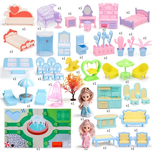 Villa Puppenhaus mit Zubehör und Möbeln: Unsere 5-stöckigen Puppenhäuser für kleine Mädchen ab 3 Jahren mit 10 Zimmern, 2 Balkonen, 2 Puppen und 39 detaillierten Möbeln und Zubehör. Einschließlich Sofa, Bett, Esstisch, Klavier, Schaukel, Schminktisch, Schaukelpferd, Küchenutensilien, Strandstuhl und Tisch und anderem Dekorationszubehör, das den Reichtum des Puppenhauses erhöht.