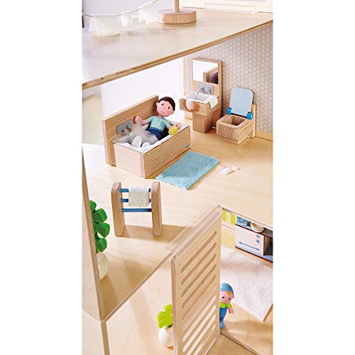 Die Puppenhaus-Möbel Badezimmer der HABA-Spielwelt Little Friends sind die perfekte Zusatz zu den Little Friends-Biegepuppen
