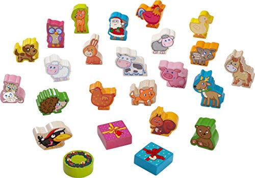 24 liebevoll gestaltete und aufwendig bedruckte Holzfiguren