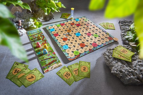 Im Spiel Spannung 1×1 von HABA geht es darum, in eine sagenumwobene Stadt aus Gold unergründlich im Regenwald zu gelangen. Dieser ist in eine Art Zahlendschungel verwandelt und ein Tor mit rätselhaften Aufgaben dicht den Eingang zur Stadt. Für clevere Rechenkünstler ist das kein Problem. Durch Multiplizieren finden sie die Ergebnisse und beschicken die Rätselwand Teil für Teil mit Zahlen. Auf der Rückseite der Plättchen finden sie die richtigen Lösungen als Selbstkontrolle. Wer die Zahlen am besten jongliert, gewinnt diese spannende Mathe-Expedition rund ums Multiplizieren.