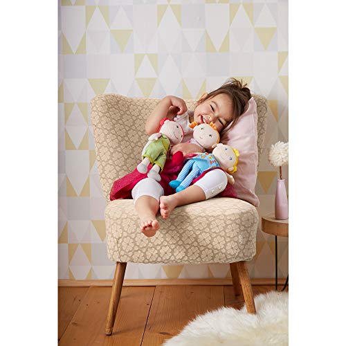 Die Kuschelpuppe Roya von HABA ist eine echte Schmusefreundin. Die Stoffpuppe ist durch weicher Füllung Außerordentlich kuschelig. Mit ihren roten abstehenden Zöpfen wirkt sie schelmisch und macht so manchen Schabernack mit. Außerordentlich gern lässt sie sich knuddeln und trocknet das ein oder Option Tränchen. Ihre schick gemusterte rosa-rote Kleidung und die Schuhe sind fest vernäht, so verrutscht beim Kuscheln nichts. Alias nach 30 °C in der Waschmaschine sieht sie noch gepflegt aufgebraucht. Kuschelpuppe Roya ist eine liebevolle Begleiterin stattdessen die ganze Baby- und Kleinkindzeit und passt zu den anderen HABA Kuschelpuppen.