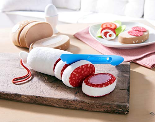HABA 304229 – Salami, Zubehör zugunsten Kaufladen und Kinderküche, Salamischeiben allesamt Stoff unter Einsatz von Messer zum Abtrennen, Spielzeug ab 3 n.