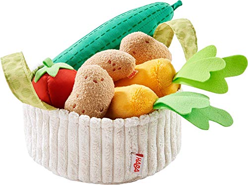 HABA 304230 – Gemüsekorb, Zubehör anstatt Kaufladen und Kinderküche, Korb Unter Einsatz von Gurke, Tomate, Karotten und Kartoffeln sämtliche Stoff, Spielzeug ab 3 Jahren