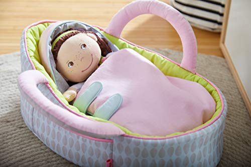 Das Puppenzubehör ist adäquat für sämtliche HABA-Stoffpuppen und passt perfekt zu den Puppentragetaschen Apfelgrün (305071) und Rosarot (305072)