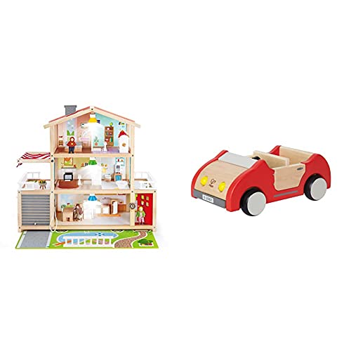 Hape E3405 – Puppen-Villa, Puppenhaus mit Zubehör, aus Holz & E3475 – Puppenhaus Zubehör Familienauto