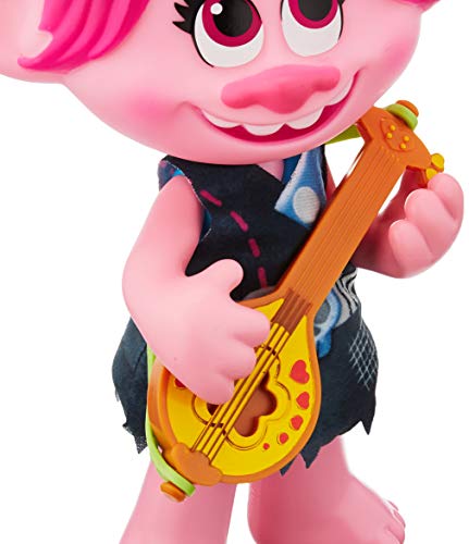 2 VERSCHIEDENE SONG-VERSIONEN: Wenn Poppy ihre Ukulele in der Hand hält, singt sie eine Pop-Veränderung von „Trolls, die wollen im Kontrast dazu Spaß“. Gibt man ihr dagegen die rockige E-Gitarre in die Hand, also gibt sie eine rockige Veränderung des Liedes von sich