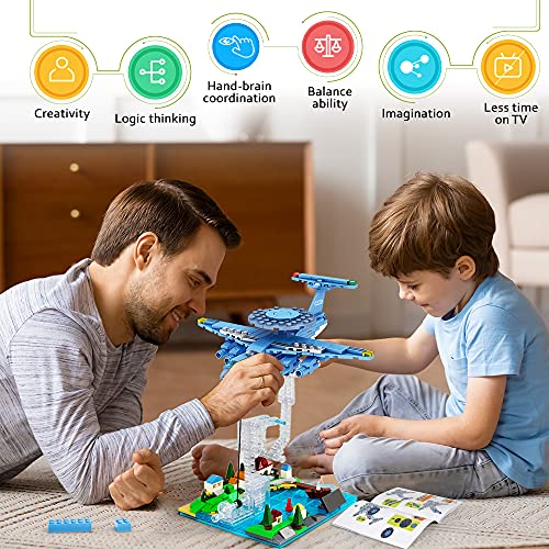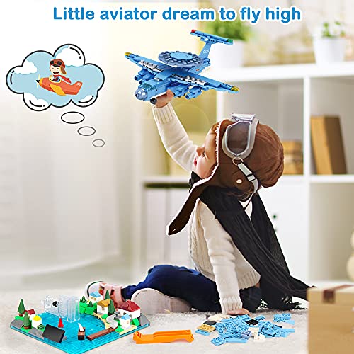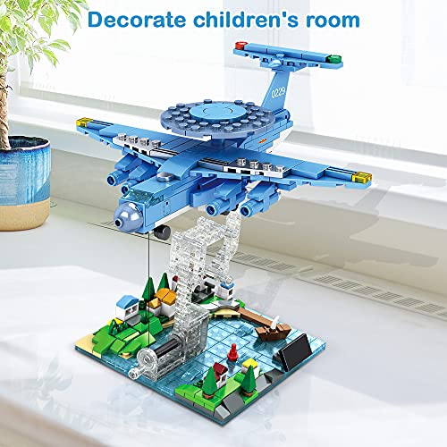 HOGOKIDS Schwebendes Flugzeug Bausteine Spielzeug: 409 Stücke City Frühwarnflugzeug Pädagogisch Kreative Bauziegel…