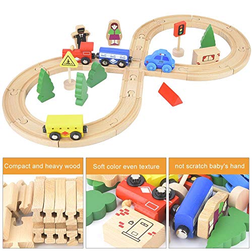 【Premium-Qualität】 Urteilsfindung Sie kompaktes und schweres Holz, weiche Farbe, gleichmäßige Textur, kein Geruch, kein Grat, keine Kratzer an der Hand des Babys.Verschiedene Gleisformen, mehrere Züge, verdickt und langlebig, nicht leicht zu entgleisen.