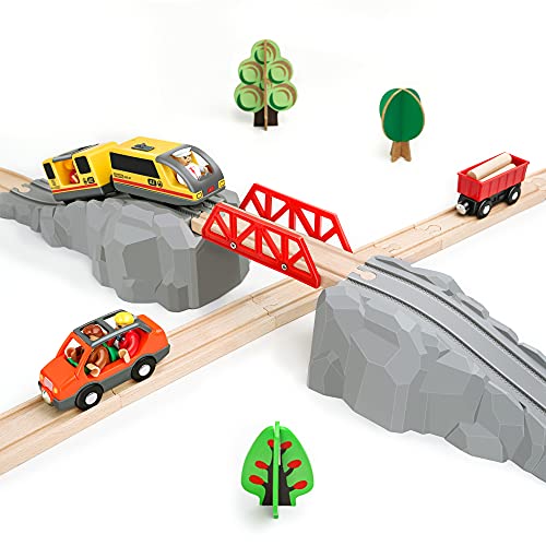 Tiny Land Holzeisenbahn und Eisenbahn Set – Elektrische Eisenbahn für Kinder , Elektrisch Spielzeug Zug, Passend für…