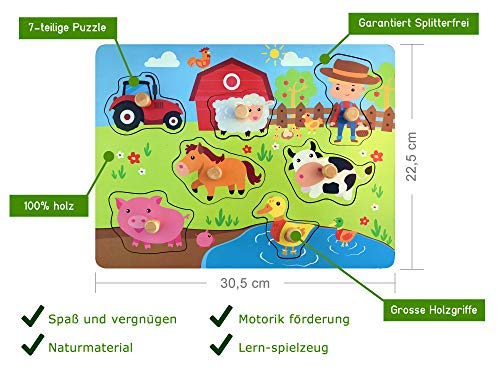 SPAß UND VERGNÜGEN – Das Bauernhof Holzpuzzle ab 1 jahren bereitet Kleinkindern jede Absolutbetrag Spielvergnügen. Das Natur-Puzzle und die Tiere sind farbenfroh gestaltet und für Kinder ein echter Blickfang.