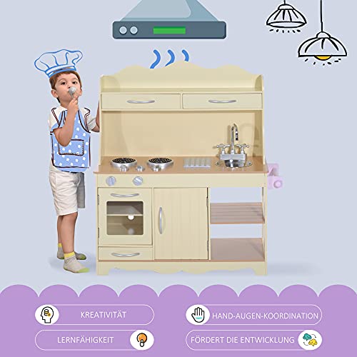 HOMCOM Kinderküche Spielzeugküche Kinderspielküche aus Holz Hochwertige Spielzeug mit Zubehör ohne Fenster Natur
