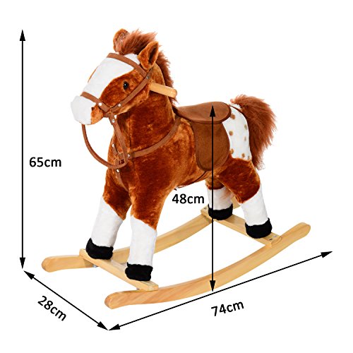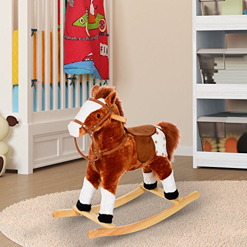 HOMCOM Schaukelpferd Kinder Schaukeltier Plüsch Schaukel Pferd Baby Schaukelspielzeug Geschenk für Kinder (braun)