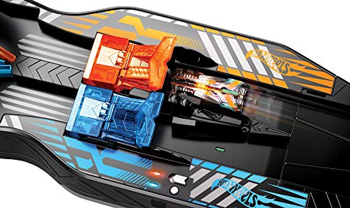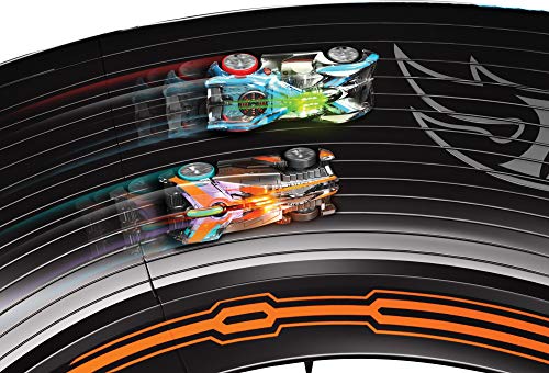 Set includes two electric-powered vehicles for high-speed action with hands-free vehicle charging and a massive 6-feet wide track set, with double wide banked curves and crossover double loop controlled by your Pfiffig-device (not included). The free app has video game play with gamified visual tutorials and dadurch tracks stats and achievements!