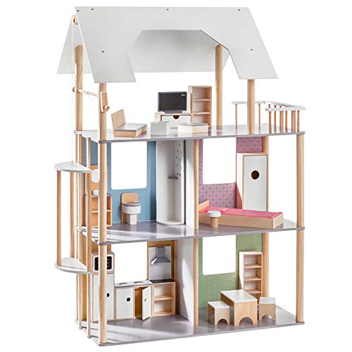 Das riesige Puppenhaus alle Holz hat eine Höhe von 116 cm im Übrigen passt auf Grund der Tatsache die angenehme Farbgestaltung in jedes Kinderzimmer.