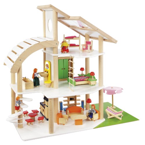 howa Puppenhaus Strandvilla Holz incl. 30 TLG. Möbelset, 4 Puppen 7014