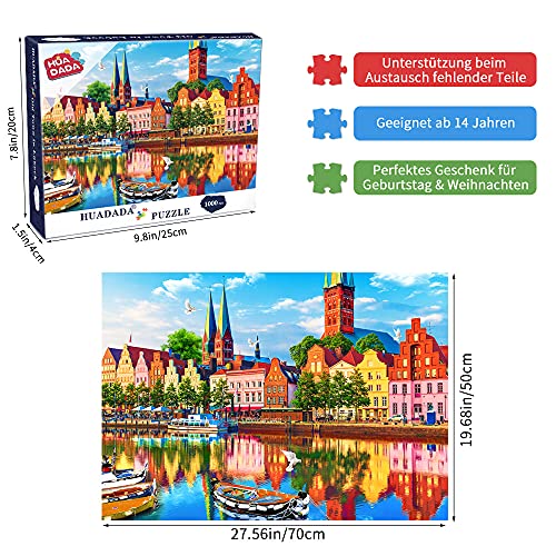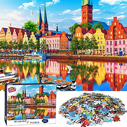 HUADADA 1000 Teile Puzzle Kinderspielzeug Lernspiel Lübeck Street View Puzzle Spiel Kinder Dekompression Deko Puzzle 70…