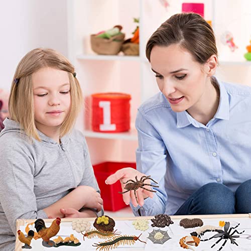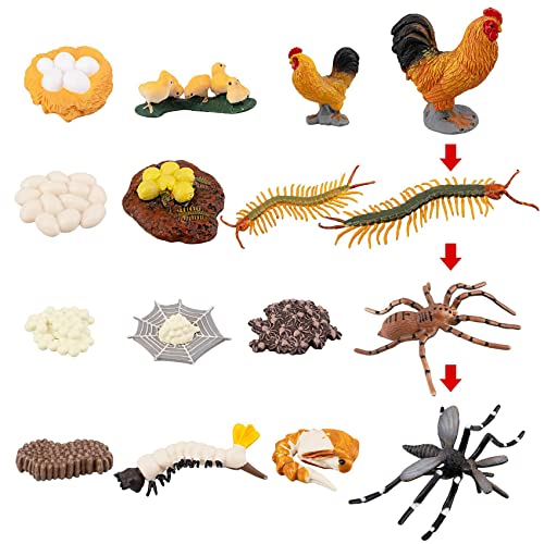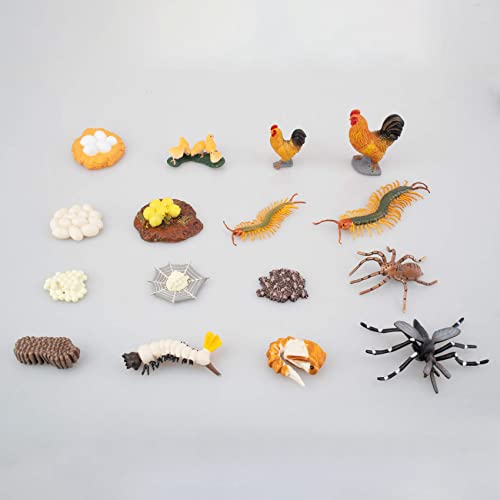 4-PACK-LEBENSZYKLUS VON LANDWIRTSCHAFTLICHEN TIERE – Dieses Tierfiguren-Set für die Farm-Nahrungskette enthält alles in allem 16 Teile. Zeigt Kindern die 4 Phasen der Entwicklung der Nahrungskette von Hahn, Tausendfüßler, Spinne und Moskito.