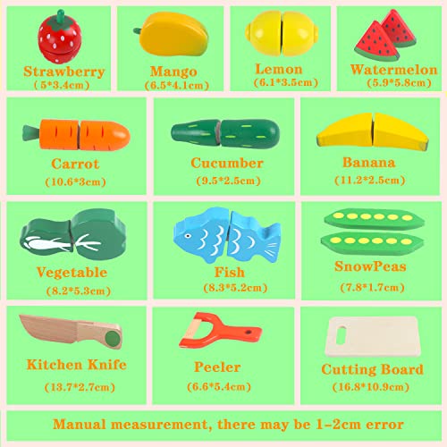 HVDHYY Lebensmittel Spielzeug aus Holz Obst und Gemüse zum Schneiden Spielküche Zubehör Holz Küchenspielzeug für Kinder…