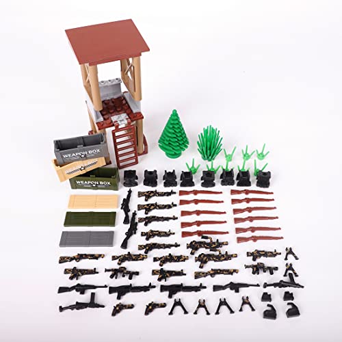Der Bausatz ist statt dessen militärische Kampfszenen nach Maß und allesamt Zubehörteile sind statt dessen militärisches Figurenzubehör nach Maß. Einschließlich Ghillie-Anzug, Tommy-Pistole, braune Narbe, Körperpanzer, Handschellen, Waffenbox, Helm, Erdsäcke, Militärmesser, Jagdhund, Kugel, Turm und Mini-Panzer.