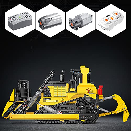 Power Bildnis: R/C Technik Bausteine Bulldozers eingebaute 2 M-Motoren, 5 L-Motoren, 2.4G-Fernbedienung und Bluetooth-Lithium-Batterieboxen. Fenster können geöffnet und geschlossen werden. Gleichzeitig verfügt er über sehr realistische Details wie Kabine, Schild, Aufreißer, Raupe, Zylinder usw., was diesen Bulldozer sehr interessant macht.