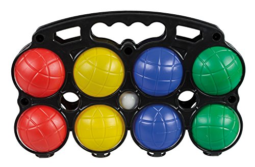 Dieses Boccia Set von Idena bietet Spielspaß im Freien für groß und klein. Beim Boccia müssen die Spieler probieren ihre Kugeln möglichst nah an die Zielkugel zu werfen – dazu braucht man in der Tat etwas Geduld und Zielgenauigkeit! Zum Set gehören, neben einer praktischen Tragetasche, die Zielkugel sowie je zwei Kunststoffkugeln in den Farben rot, breit, grün und gelb.
