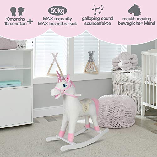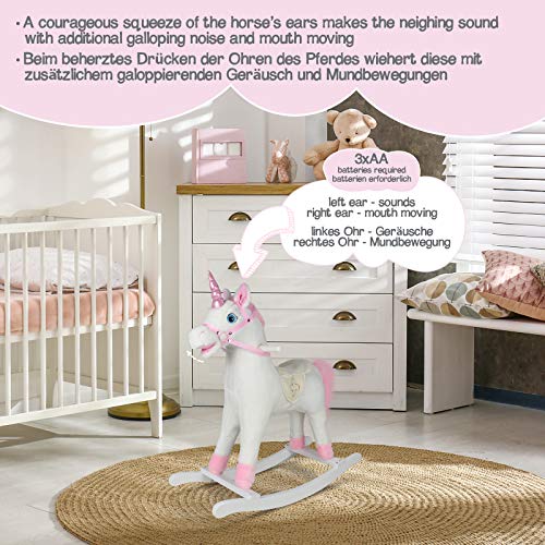 ⭐⭐⭐⭐⭐ GERÄUSCHEFFEKTE: Wenn man das Ohr drückt öffnet das plüschige und kuschelige Wipppferd den Mund/wiehert oder erzeugt Galopp Geräusche