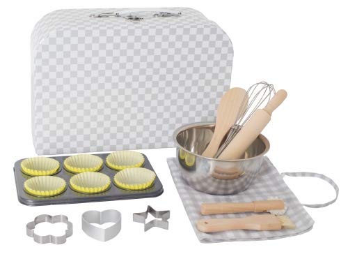 Inhalt: 1 Koffer, 1 Bereich Handtuch, 1 Nudelholz, 1 Ballonbesen, 1 Tasse Kuchenform, 1 Schale, 1 Rührlöffel, 1 Gebäckbürste, 1 Gebäckrad, 3 Lebkuchenschneider, 24 Tassen Kuchen