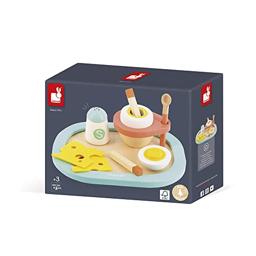 EN APPETIT ! Appetit auf ein herzhaftes Frühstück? Dieses „Eierbecher“-Set ganz Holz mit dem ideal gekochten Ei, knusprigem Brot und feinem Käse ganz Filz wird Ihr Nachkomme begeistern! Eine Prise Salz darüber – en Appetit! Das liebevolle Design dieses Küchen-Sets lässt Leckermäulern das Wasser im Mund zusammenlaufen und ergänzt ideal die übrigen Küchen- und Geschirr-Sets von Janod;