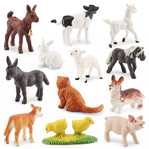 【Realistische Bauernhoftiere】Enthält 12 Miniatur-Bauernhoftiere. Eselsfohlen, Hereford-Kalb, Pony, Ziege, Lamm, Fohlen, Kätzchen, Corgiwelpe, Ferkel, Huhn, Holsteiner Kalb, Kaninchen. Ganz wird nicht nochmals