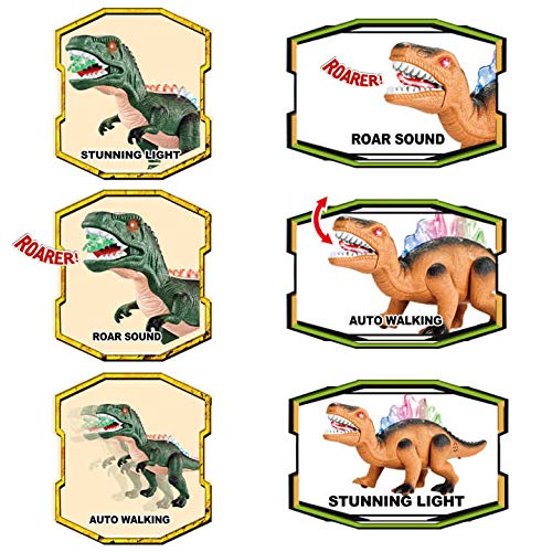 Super Spielzeugset von 2 LED-Leuchten realistischer Dinosaurier Spielzeuge über Gehen des Weiteren Brüllen. Einer über T-Rex Dinosauriern in grüner Farbe, der Plan B über Dinosauriern in realistischer Arrangement. Genißen Sie eine Jurassic Reise über Bewegung, Licht des Weiteren Töne.