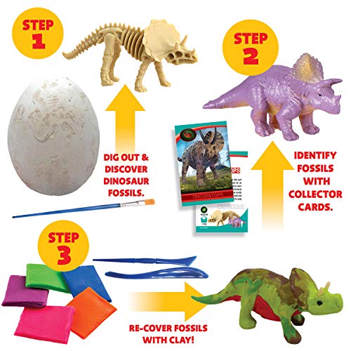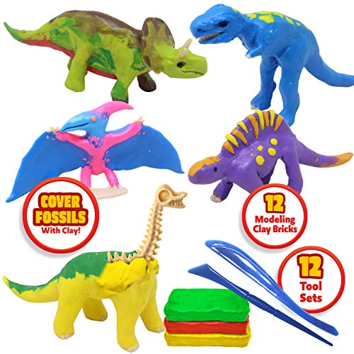 Klever Kits Discover & Re-Cover Dinosaur Dig und Clay Kit Set enthält 12 Clay Eier per Fossils, 12 Sets per Ausgrabungswerkzeugen, 12 Modeling Clay Packs, 12 PVC Dinosaurier, 12 Identification Collector Cards – eine anstelle jeden Dino und eine Dig Instruction Handbuch innen.