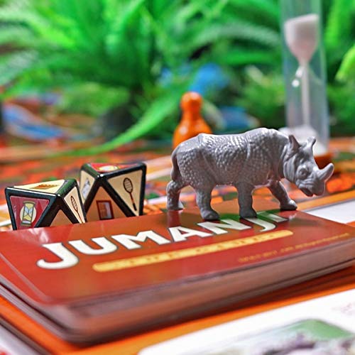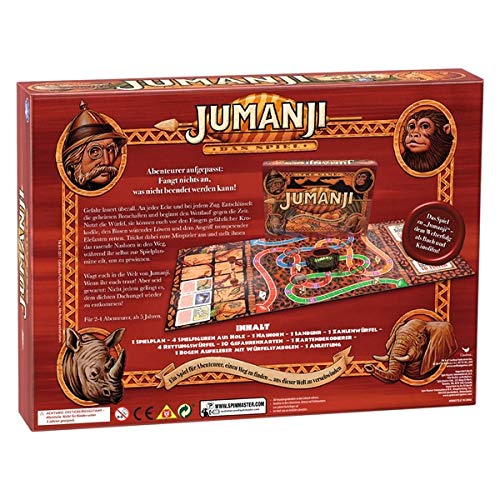 Ein Spiel für Glücksjäger, einen Abhanden gekommen zu finden…jeglicher dieser Welt zu sich davonmachen. Mit Hilfe des achtseitigen Zahlenwürfels bewegt ihr Euch durch den Dschungel – ewig darauf gefasst, eine neue Katastrophe zu erleben. In diesem Spiel auf Zeit müssen die Mitspieler schnell walten, um Schlimmeres zu vorbeugen. Löst die Gefahrenkarten und benutzt den Decoder, um geheime Nachrichten zu entdecken! Entweder wird der Dschungel dich und deine Mitspieler überwinden – dann verliert ihr aus. Oder der Spieler, der rechtzeitig denn Erster das Zentrum erreicht ruft „Jumanji“ – und gewinnt das Spiel. / Inhalt: Spielplan, Bauern, Rhino-Figur, Timer, Zahlwürfel, 4 x Rettungswürfel, 30 x Gefahrenkarten, Spielbrettmitte, Decoder, Beschriftungsbogen, Vollständige Anleitung Kooperatives Spiel Schneller Abzug ins Spiel Spiel mit hohem Glücksfaktor durch das Würfeln Spieldauer: ca. 45 – 60 Minuten Spieleranzahl: 2 – 4 Spieler Altersempfehlung: ab 5 Jahren Sprache Deutsch
