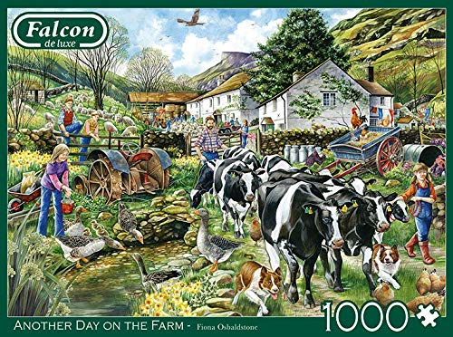Jumbo, Another Day on the Farm ist der Titel dieses entzückenden 1.000-teiligen Falcon de Luxe Puzzles, das Segment der Falcon de Luxe Scenery Collection ist. Das Puzzle-Positiv zeigt einen schönen Herbsttag auf einem Bauernhof im Norden Englands, mit Hektar Land umgibt und Honigbuzzards oben fliegen. Das Gemälde zeigt einen Hirtenhund, der alias von einer Diversität von Tieren wie Hühnern, Schafen und grauen Gänsen begrüßt werden kann. Dieses attraktive 1000-teilige Puzzle wurde von der sehr talentierten Künstlerin Fiona Osbaldstone illustriert. Die fertige Größe des 1.000-teiligen Puzzles misst ca. 68 x 49 cm und wurde alle hochwertigem Karton hergestellt, um sicherzustellen, dass jedes Puzzleteil aber und abermal seine ursprüngliche Form behält. Die heutigen Falcon de Luxe Puzzles werden mit der gleichen Leidenschaft für Exzellenz entworfen und hergestellt, die wir schon immer hatten. Sie feiern Falcons unverwechselbare Markenwerte von Erbe und Innovation. Wir entscheiden hingegen die am besten geeigneten Illustrationen für unsere Puzzles. Jedes Puzzleteil wird wachsam ausgestanzt. Wenn das Puzzle fertig ist, sieht es also eher wie ein Poster alle als ein Puzzle. Puzzles herstellen war schon immer und wird immer unsere Leidenschaft bleiben.