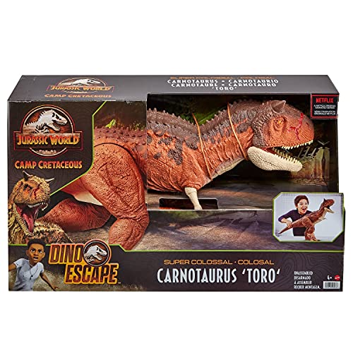 Spannende Ereignis erleben Anhand dieser Jurassic World Riesendino Carnotaurus Toro“-Dinosaurierfigur, die von der Animationsserie Jurassic World: Camp Cretaceous“ beflügelt ist.