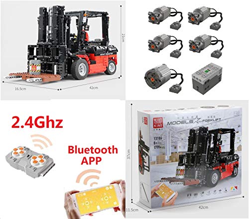 Technik Ferngesteuertes Gabelstapler Mit Power Functions Set (1x XL Aggregat, 4x L Motors, 1x Fernbedienung und 1x Lithium-Akkumulator-Box). Kann per Fernbedienung oder Bluetooth Handy-App gesteuert werden. Der Gabelstapler selbst ist sehr erschütterungsfest und konstruktiv sehr ansprechend. Der Gabelstapler enthält viele realistische Details und Funktionen, insbesondere sind einige kleine Details sehr schön umgesetzt.