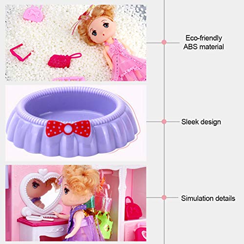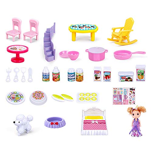 Open Sided Doll Townhouse Verträumte Funktionen – Das House Kit verfügt über einzigartige Einrichtungsgegenstände. Zu den Haushaltsgeräten gehören hochklappbare Toiletten und ein Kleiderständer, die sich leicht bewegen und nach Belieben anordnen lassen. Die zu öffnenden breiten Fenster auf beiden Seiten ermöglichen es, Puppen die Gesamtheit einem anderen Blickwinkel zu betrachten.
